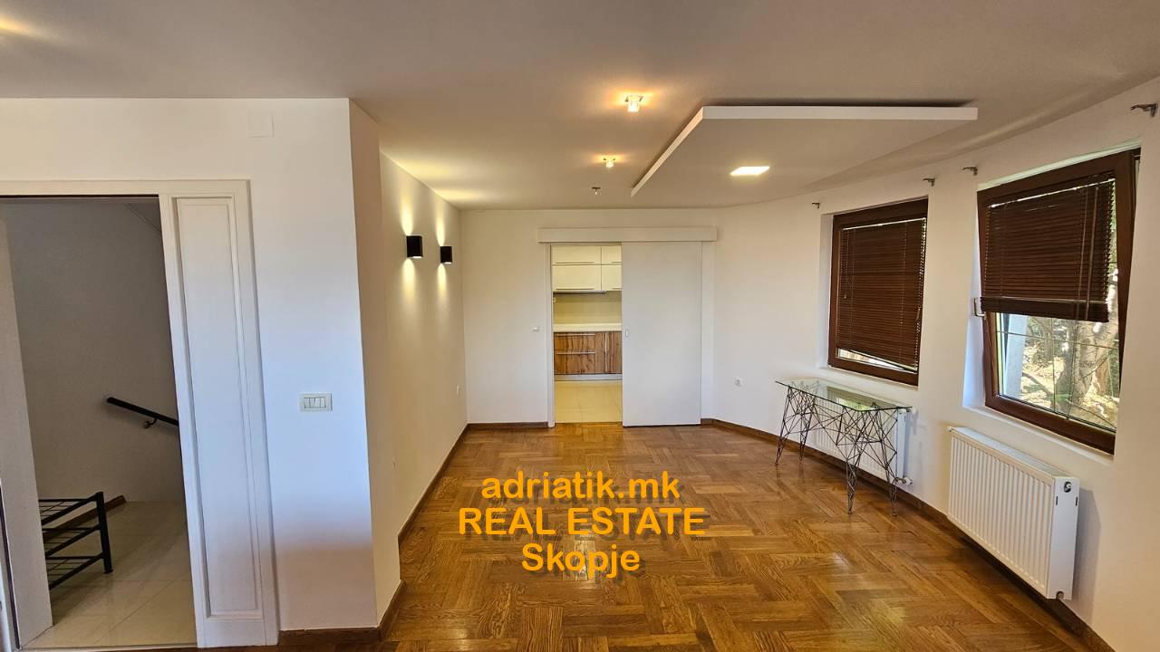 Short description: Ground floor: Living room with dining area and kitchen, guest toilet, Big balcony. First floor: master bedroom with its own bathroom and walk in closet. Second floor: living room/bedroom with small kitchen, working space, bedroom, bathroom. Lower ground floor: utility room, small bedroom, small living room/hobby room with small kitchen, bathroom, balcony with exit to the green yard.