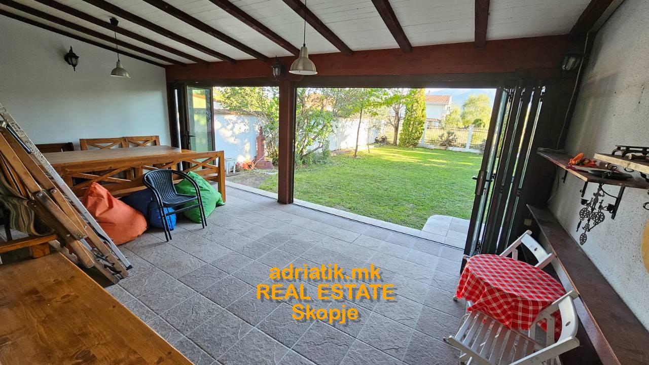 180m2 House in Bardovci, two levels, 4 Bedrooms (3 bedrooms +1 working room), 2 bathrooms, big 30m2 covered terrace , 400m2 fenced yard ,covered parking spaces. NE SE IZDAVA SEGA -MEGJU NIV DA SE DOGOVARAAT pauzirano za SE
