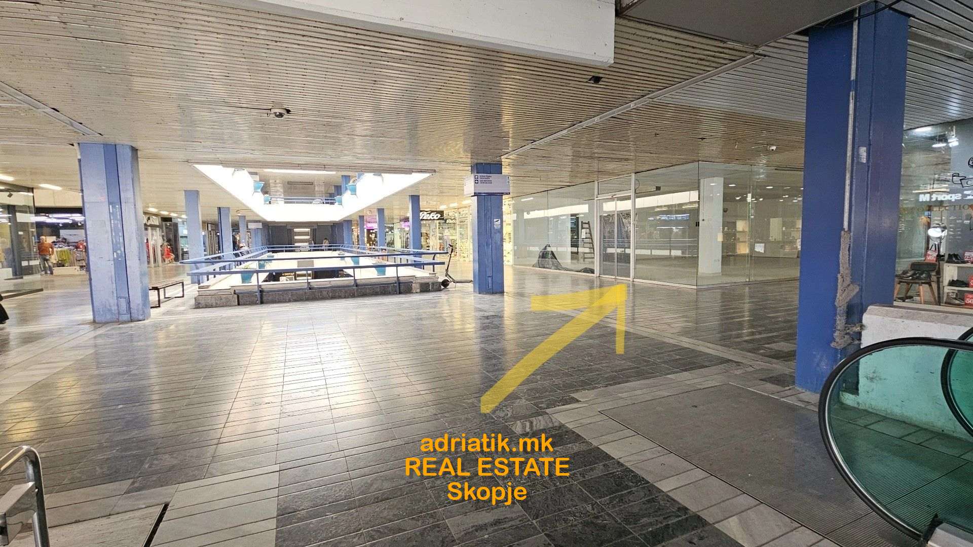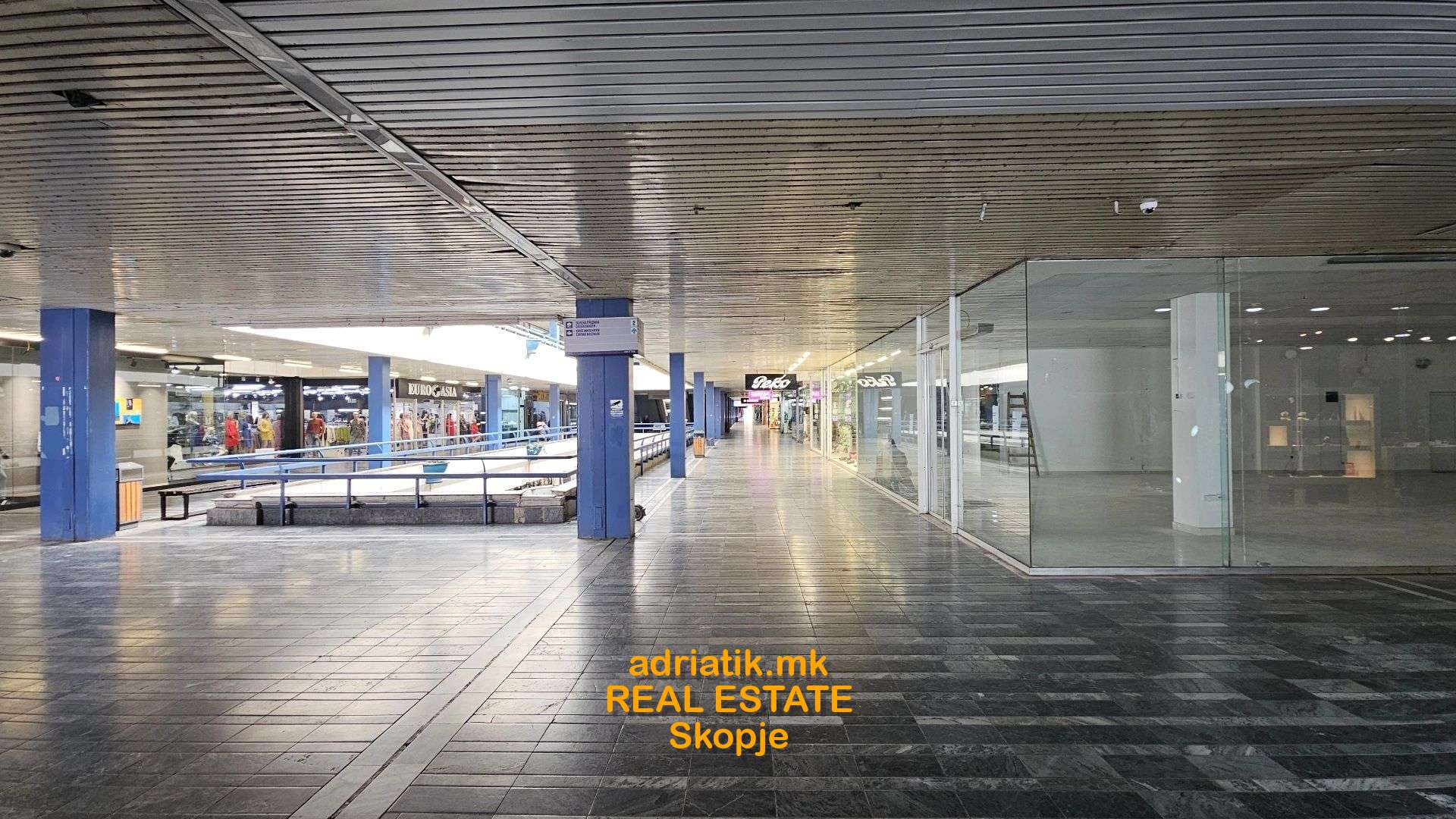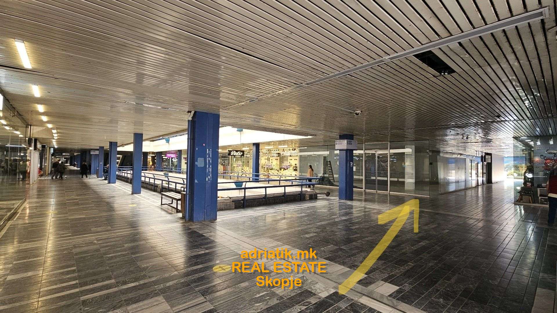 Excellent store on the FIRST floor -the main corridor , close to the entrance from the main square . Close to the escalators, stairs and elevators. Located on the corner - two sides with glass . High visibility. Monthly charges for heating/cooling , maintenance of the common areas is around 900Eur.