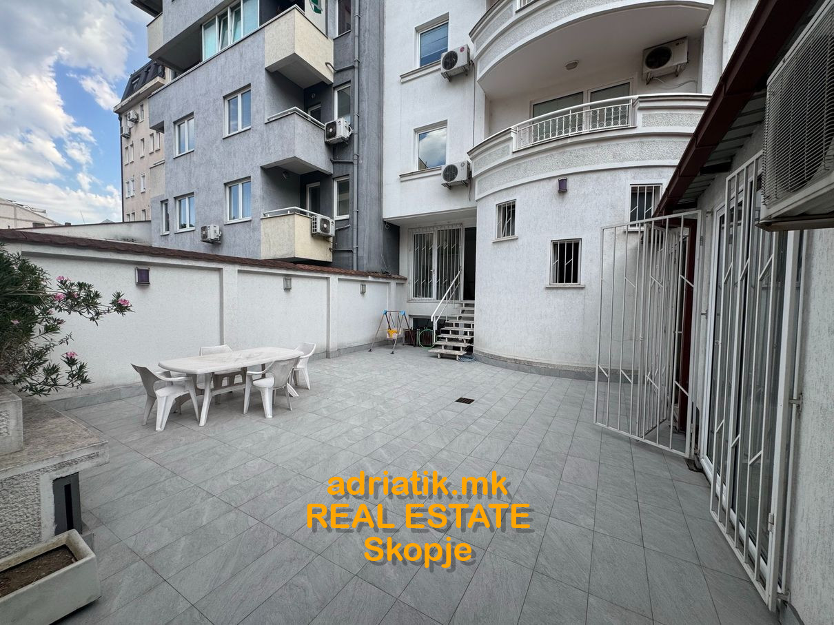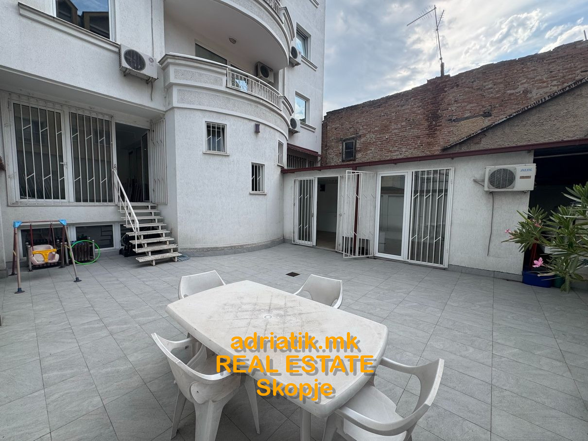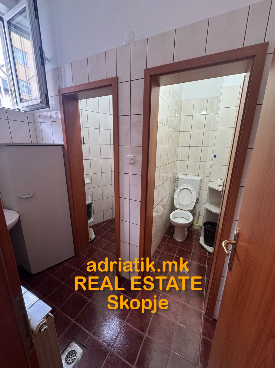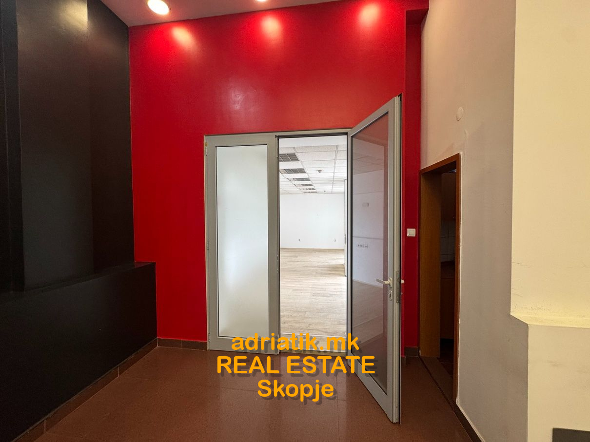 Excellent combination of office space with store in Center of Skopje, located on the main street close to Catholic Church. It has 2 entrances- one from the main street, another from the common entrance of the office building. There are 3 partitioned parts, like 2 offices and one showroom . Office kitchen installed , 2 toilets, and private back yard ONLY for this space which can be used as a relax during the coffee breaks. For extra additional security , metal blinds are installed . Parking space available in the underground garage with additional payment. Paid parking space across the office -which can be used for the clients.