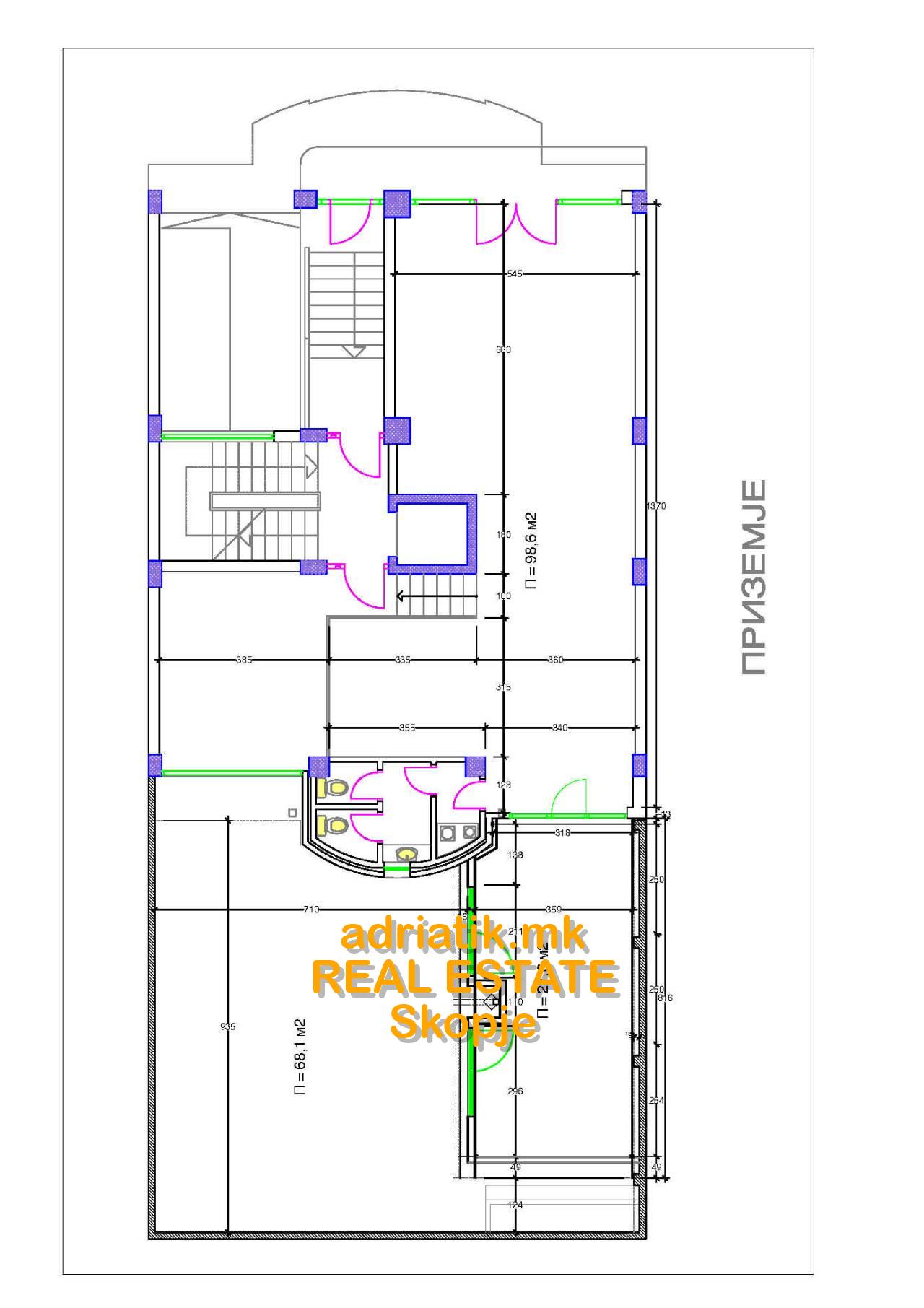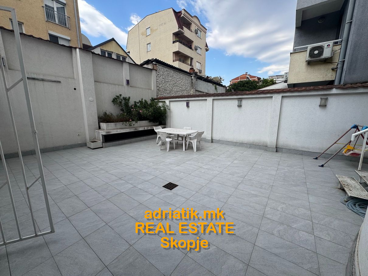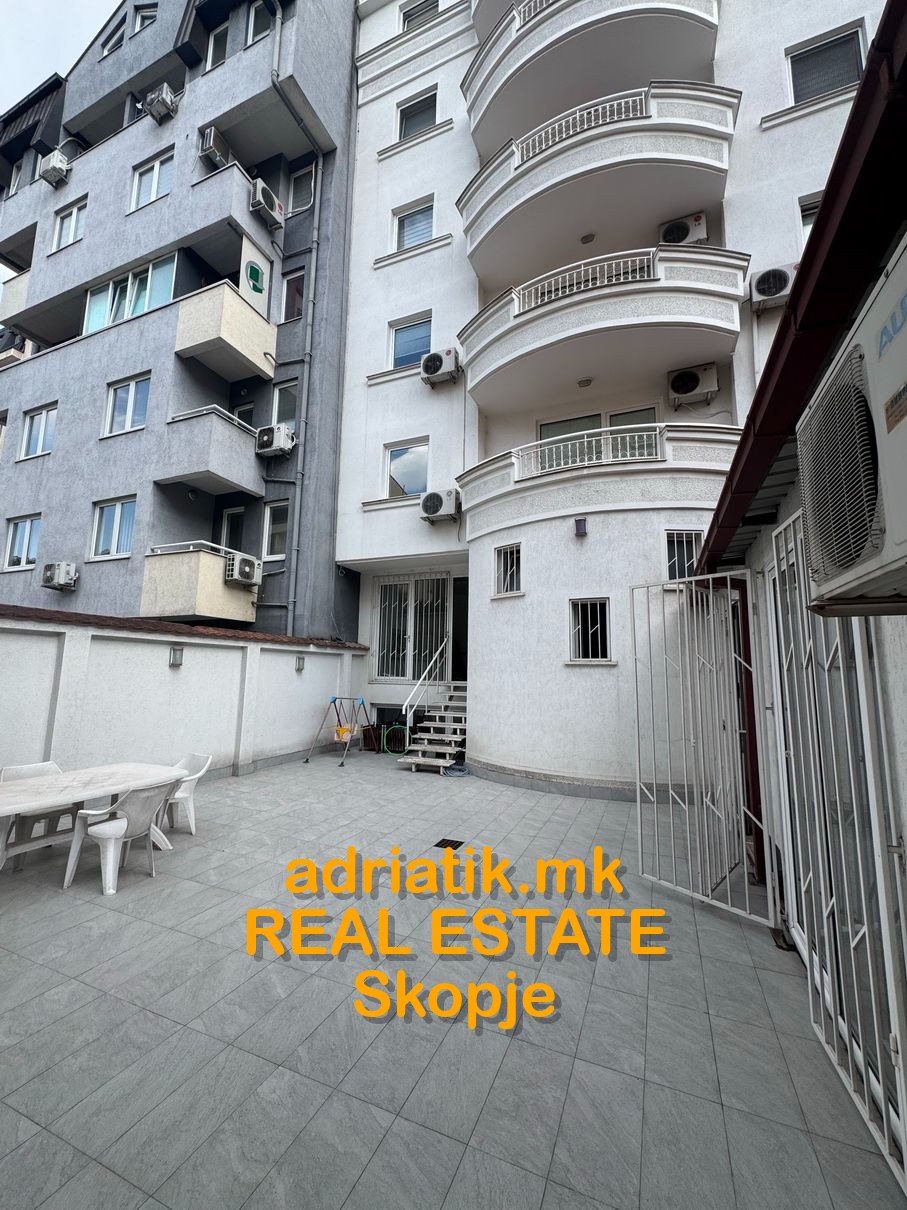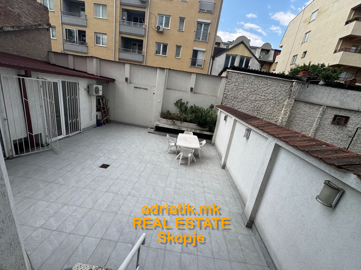 Excellent combination of office space with store in Center of Skopje, located on the main street close to Catholic Church. It has 2 entrances- one from the main street, another from the common entrance of the office building. There are 3 partitioned parts, like 2 offices and one showroom . Office kitchen installed , 2 toilets, and private back yard ONLY for this space which can be used as a relax during the coffee breaks. For extra additional security , metal blinds are installed . Parking space available in the underground garage with additional payment. Paid parking space across the office -which can be used for the clients.