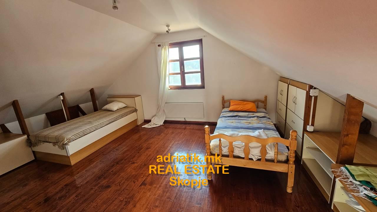 180m2 House in Bardovci, two levels, 4 Bedrooms (3 bedrooms +1 working room), 2 bathrooms, big 30m2 covered terrace , 400m2 fenced yard ,covered parking spaces. NE SE IZDAVA SEGA -MEGJU NIV DA SE DOGOVARAAT pauzirano za SE