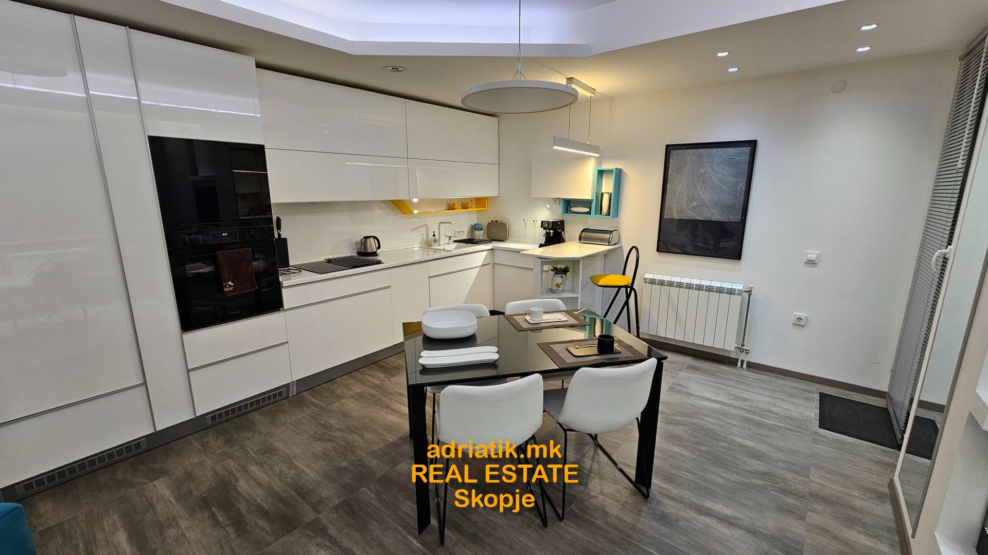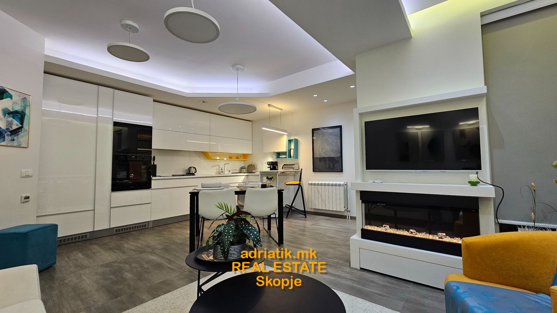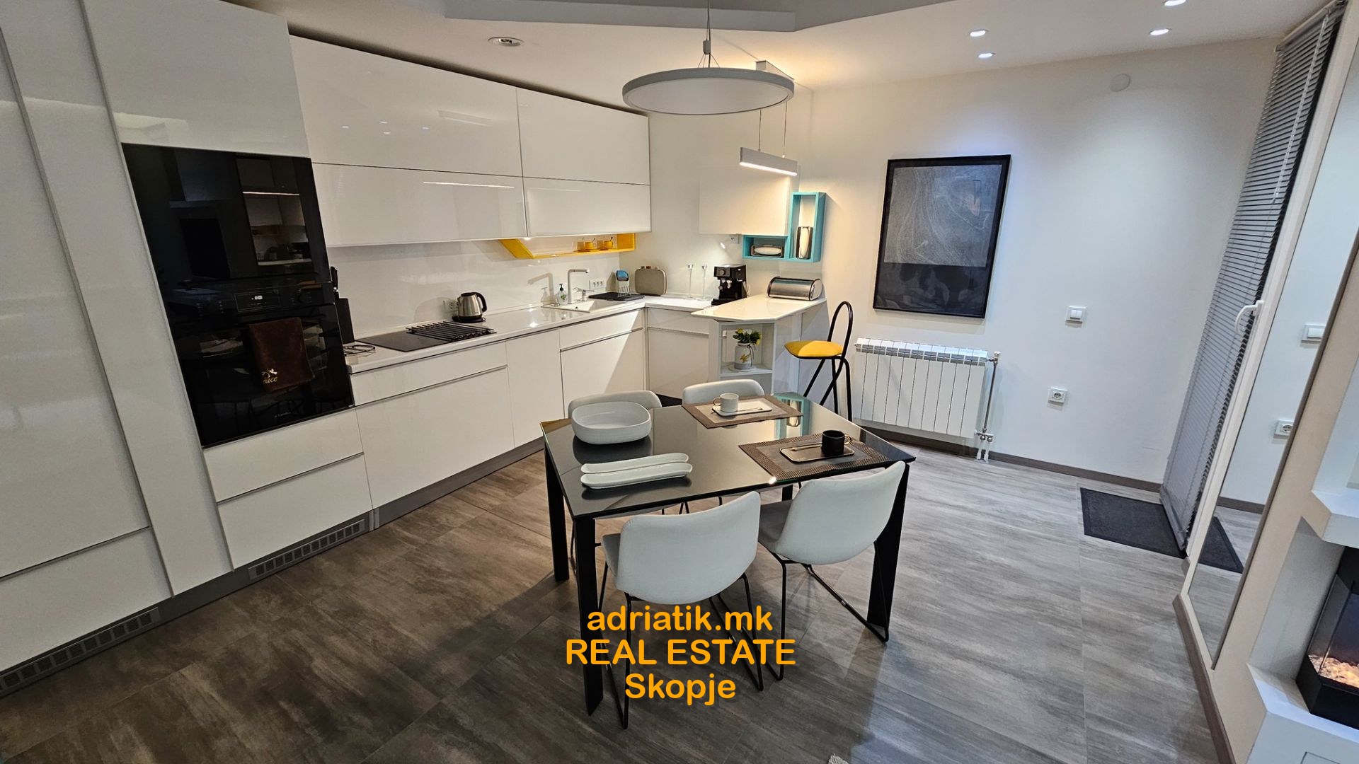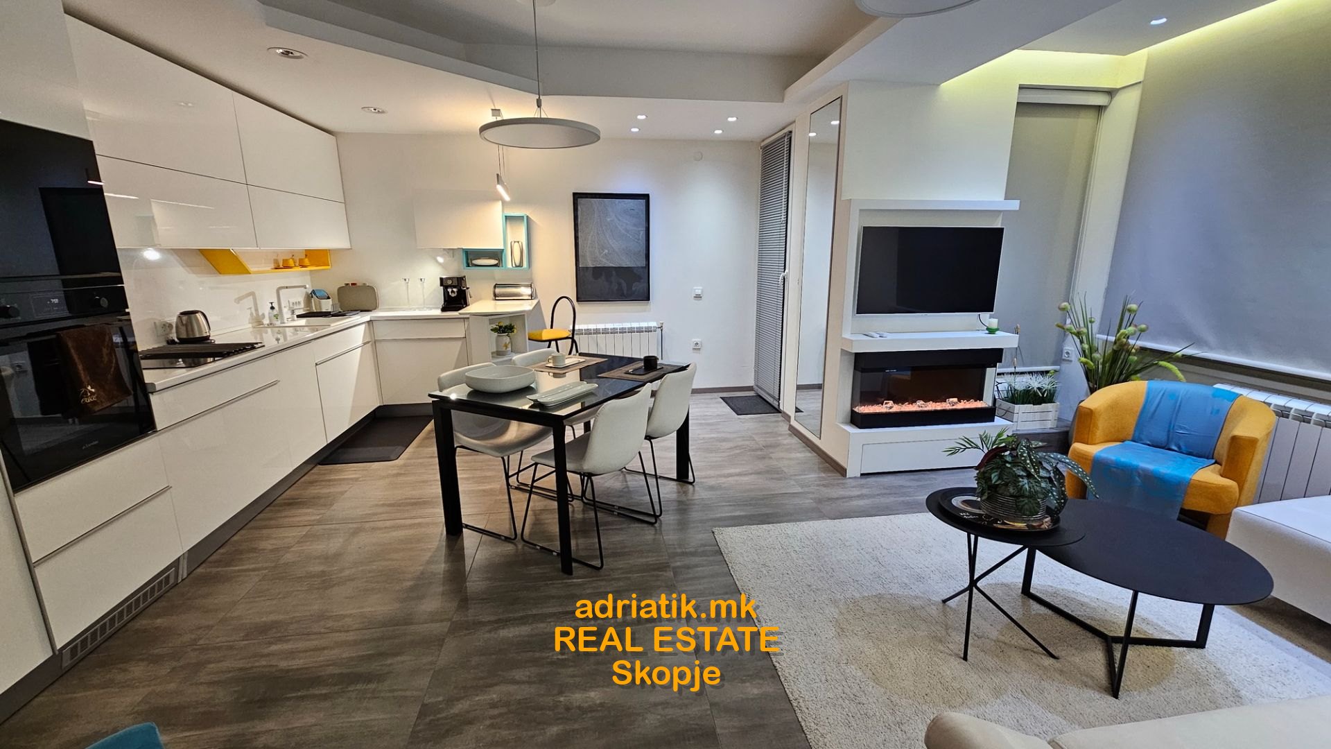 EXCELLENT NEW 62m2 Modern style Apartment in Centar-Kapistec, close to Zebra Mall and Diamond Mall, 4th floor , 2 Bedrooms, 1 bathroom, 1 guest toilet, utility with washing and drying machine, dish washer, coffee machine, fireplace( electric -just for effect) , lights which can change colors with remote control , central heating , floor heating, specially designed for maximum space and efficiency of use, underground garage 16m2 , 1 balcony