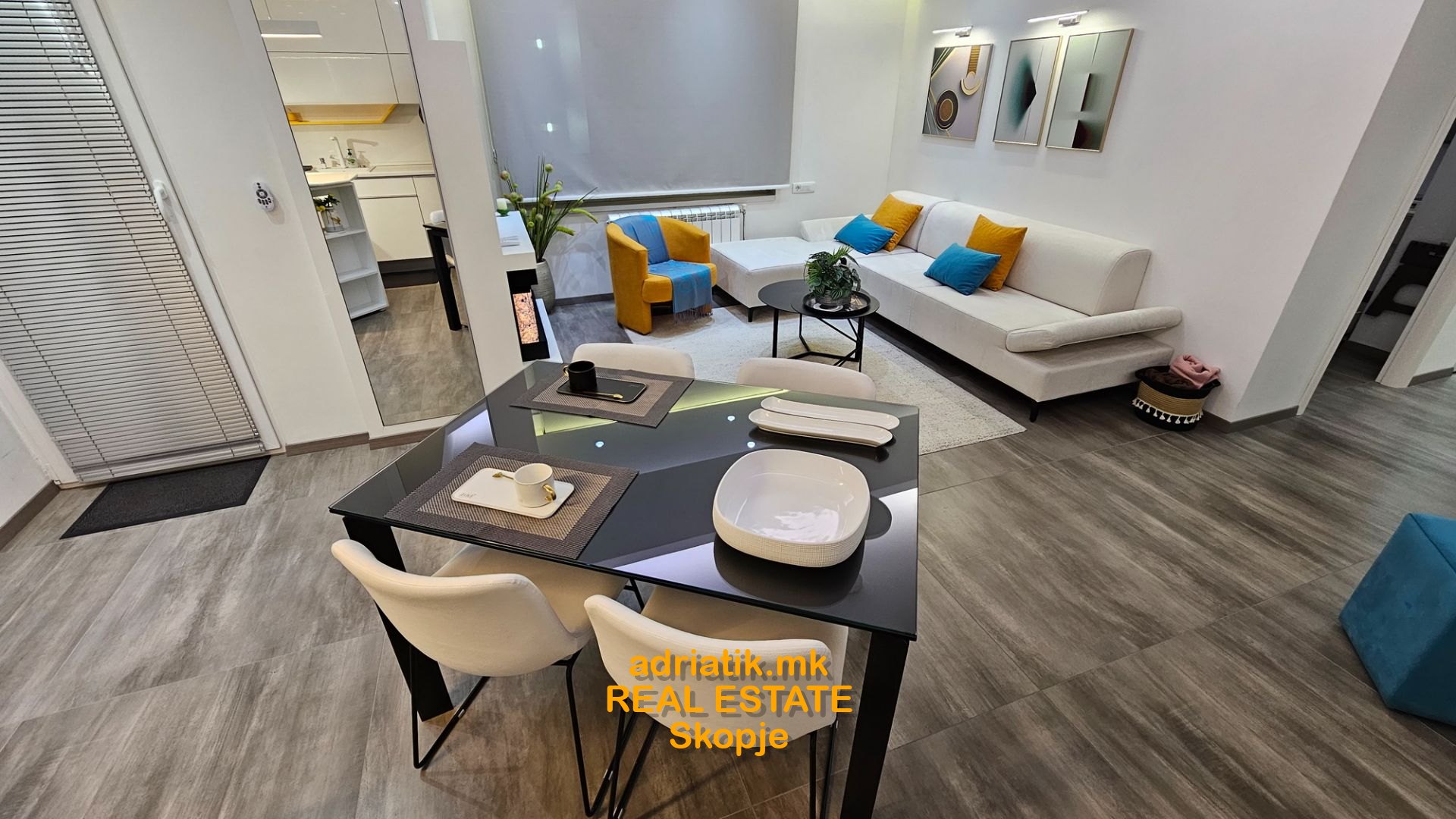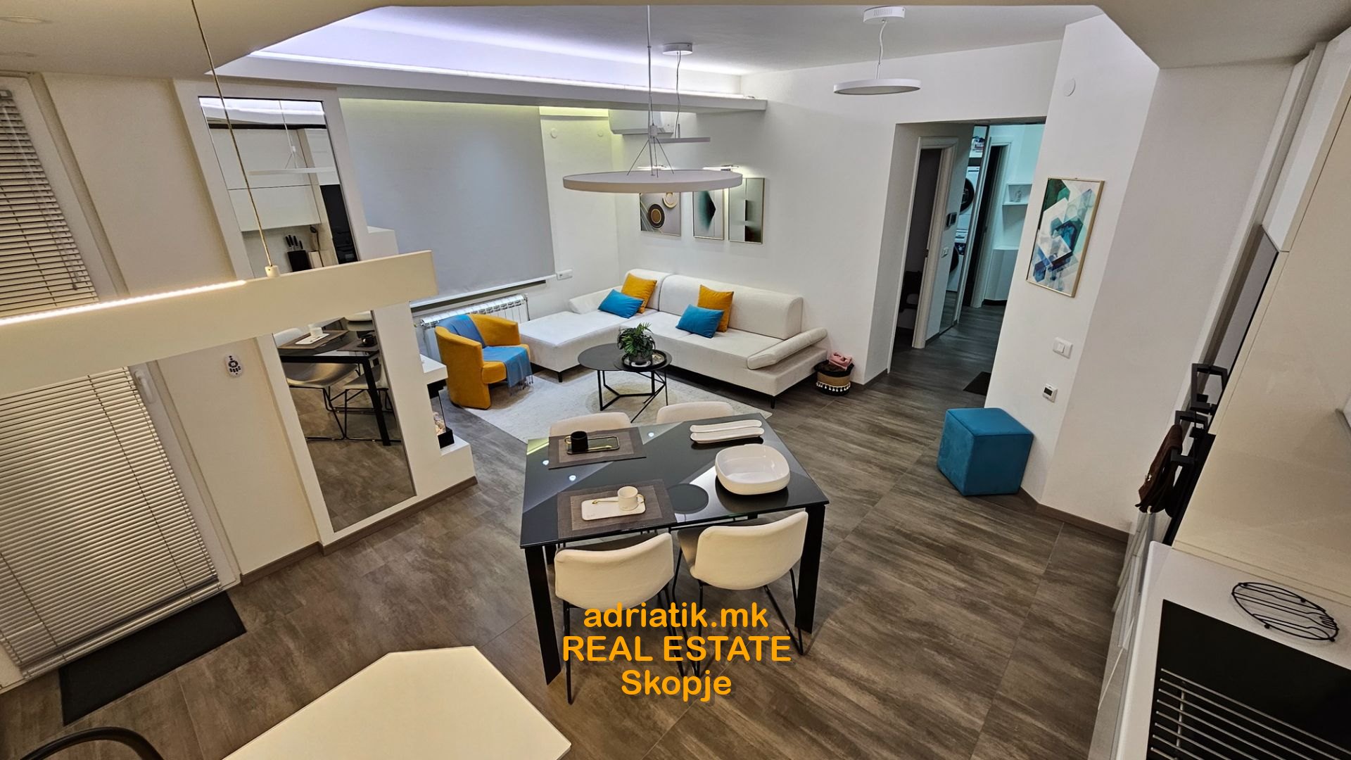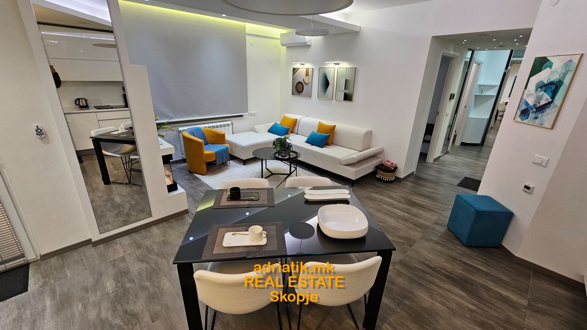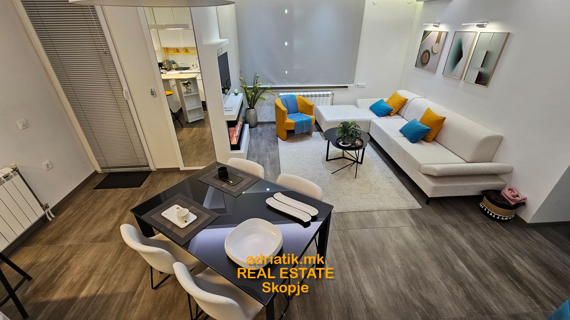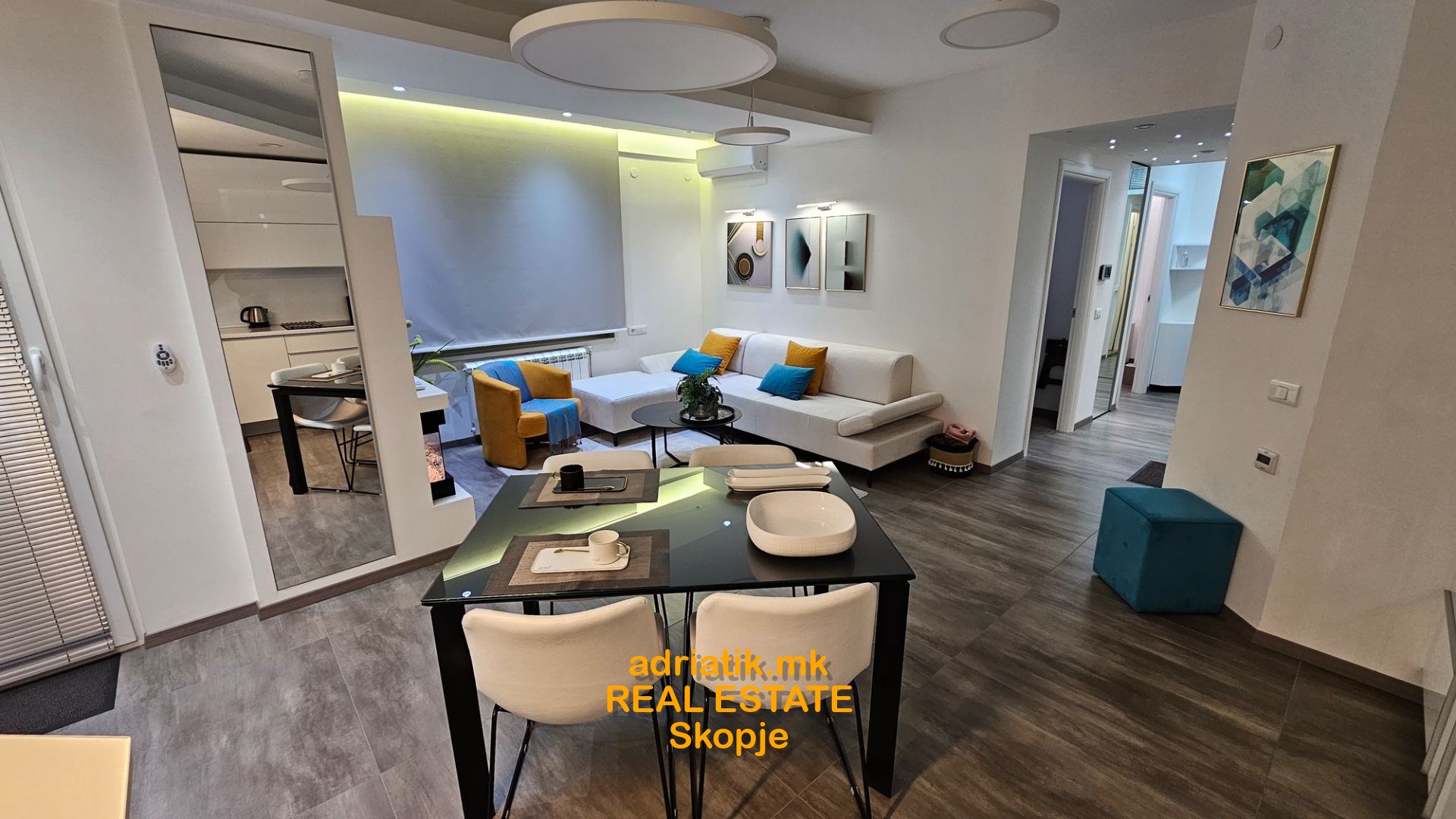 EXCELLENT NEW 62m2 Modern style Apartment in Centar-Kapistec, close to Zebra Mall and Diamond Mall, 4th floor , 2 Bedrooms, 1 bathroom, 1 guest toilet, utility with washing and drying machine, dish washer, coffee machine, fireplace( electric -just for effect) , lights which can change colors with remote control , central heating , floor heating, specially designed for maximum space and efficiency of use, underground garage 16m2 , 1 balcony