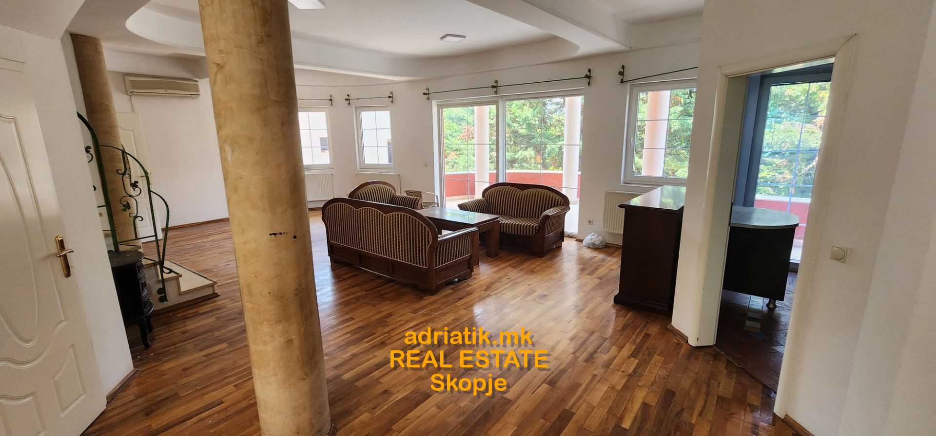 GROUND FLOOR: its like a separate apartment of 120 m2 (which has also a separate entrance if want to be used) with living room, bedroom , small kitchen, and also utility room is in this floor. FIRST FLOOR: is the one with the big living room and dining ,kitchen, guest toilet , big terrace. SECOND FLOOR: 4 bedrooms , 2 bathrooms ATICFLOOR: open space - it can be used as hobby room .... Renovated . Опис на куќата: ПРИЗЕМЈЕ: е како посебен стан од 120 м2 (кој има и внатрешен и посебен влез ако сака да се користи) со дневна, спална соба, мала кујна, а исто така и помошна просторија е на овој кат. ПРВ КАТ: е оној со голема дневна и трпезарија, кујна, гостински тоалет, голема тераса. ВТОР КАТ: 4 спални соби, 2 бањи ПОТКРОВЈЕ : отворен простор - може да се користи како хоби соба .... Централно греење на струја поделено на два сегмента. Реновирана фасада